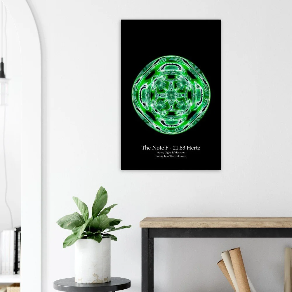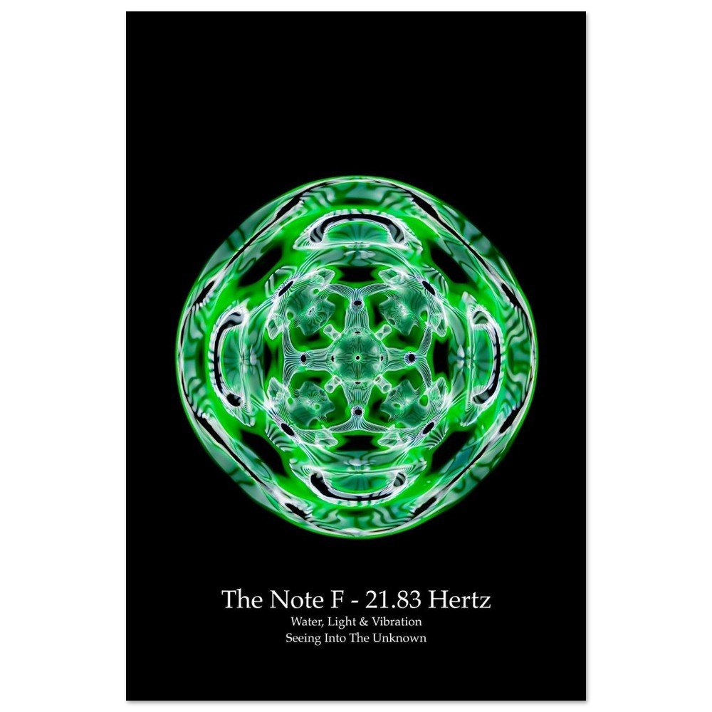 Cymatics: The study of visible sound. This photograph was captured using a dish of water, vibrating to 21.83 hertz, with lights shining down from above. High-quality, lighter-weight, classic semi-glossy paper. 24" x 36".